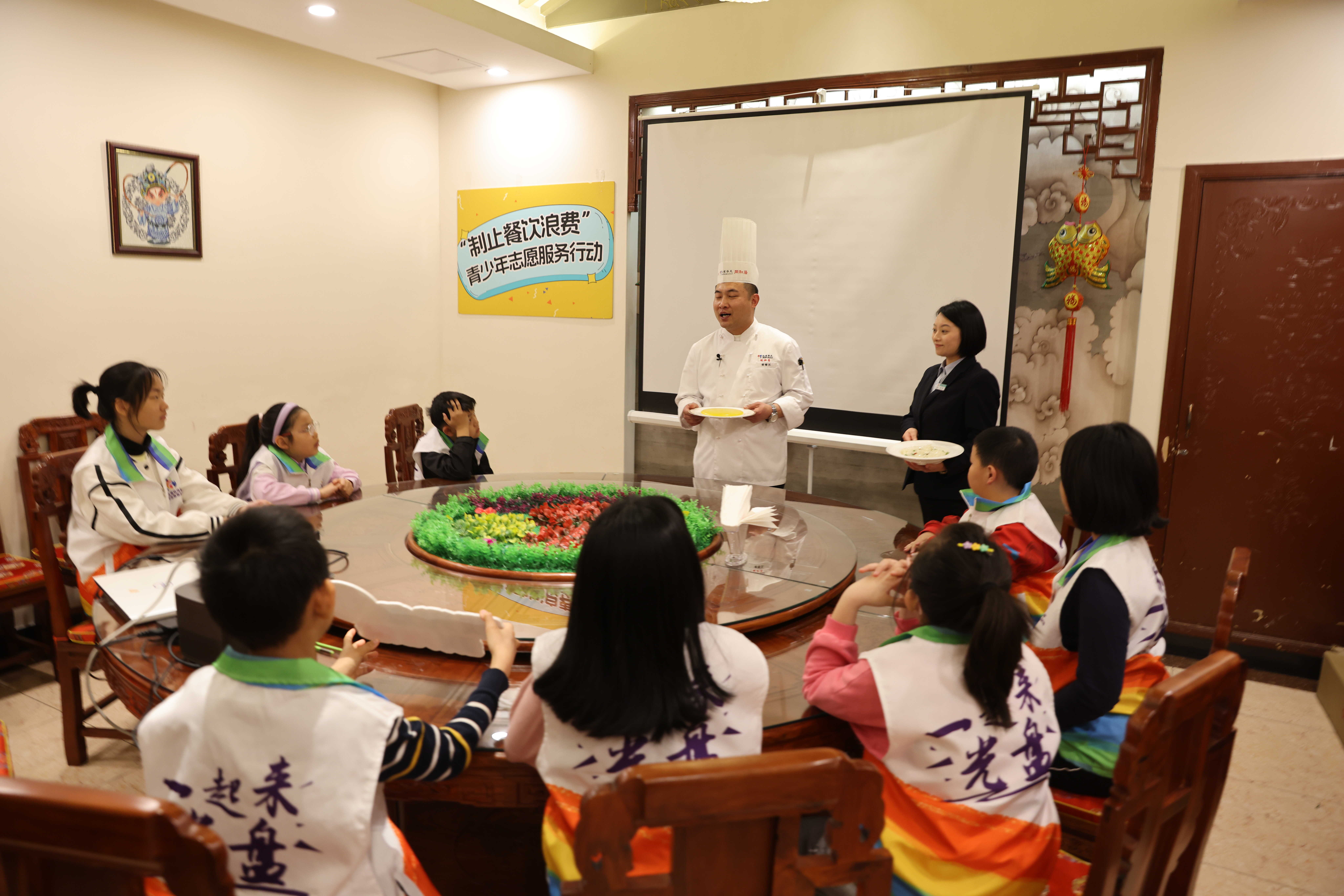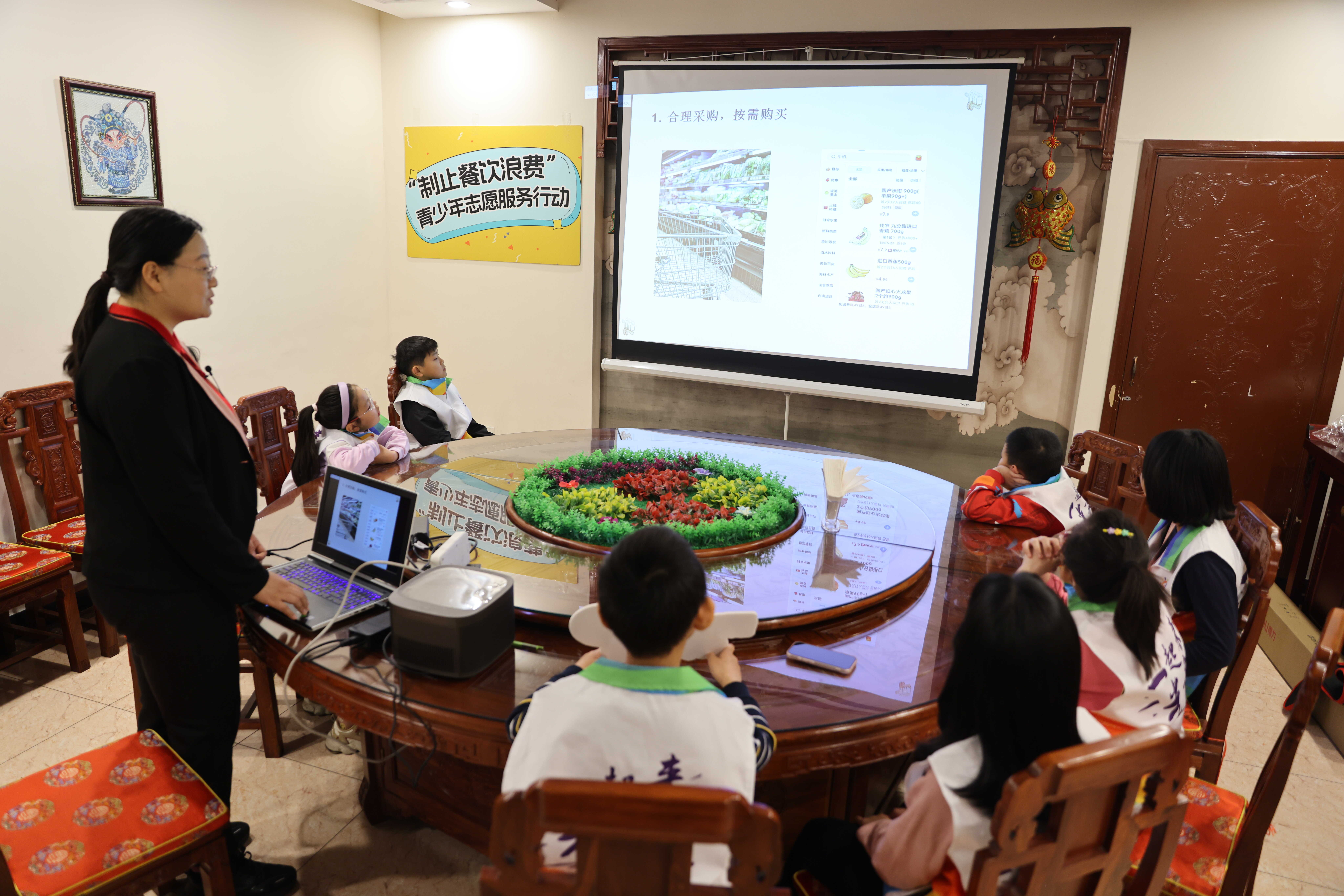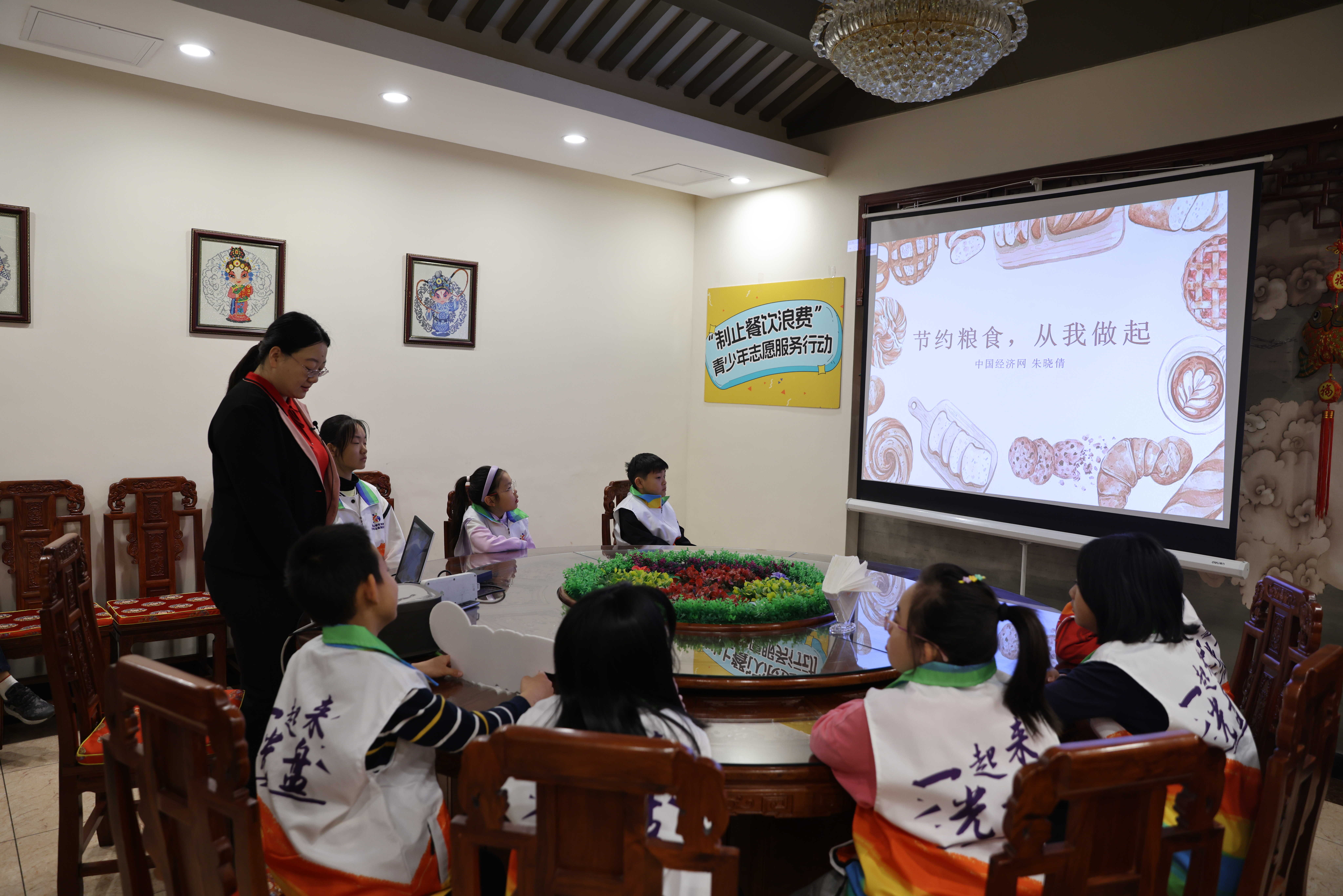 志愿者学习节约粮食科普课堂